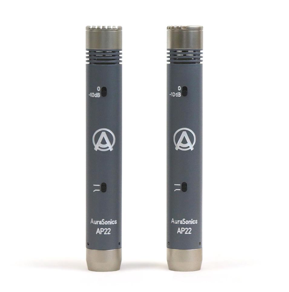 Модель AuraSonics AP22-MP является подобранной парой из двух студийных инструментальных микрофонов высшего класса с конденсаторным капсюлем 22 мм. Рабочая мембрана выполнена из майлара с напылением золотом 24K (999) толщиной 6 микрон. Корпус сделан из латуни и покрыт диэлектрической краской. Капсюль микрофона имеет кардиоидную характеристику направленности, то есть требует правильного положения микрофона перед исполнителем. Основное направление для снятия звука находится по оси корпуса микрофона со стороны капсюля.
