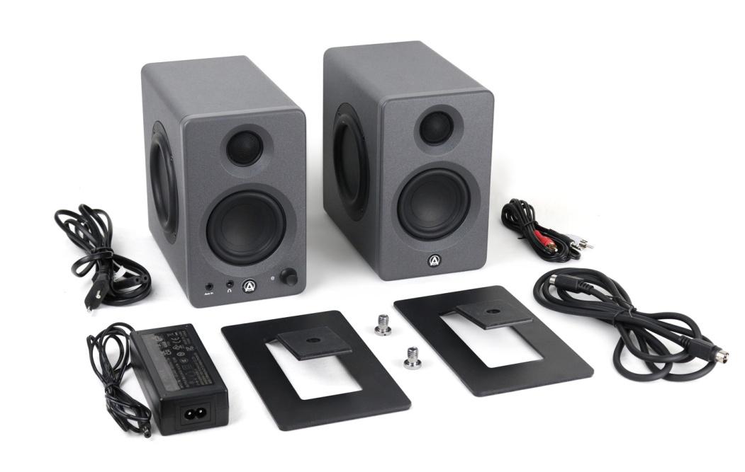 В комплект поставки входит: пара мониторов, активный и пассивный, две настольные подставки с винтами крепления, сетевой кабель для блока питания, блок питания, 4 жильный акустический кабель для подключения пассивного монитора в режиме BiAmping, звуковой стереокабель, коннектор mini-Jack стерео на два RCA, комплект виброизолирующих прокладок из этиленвинилацетата с клейким основанием, инструкция по эксплуатации.