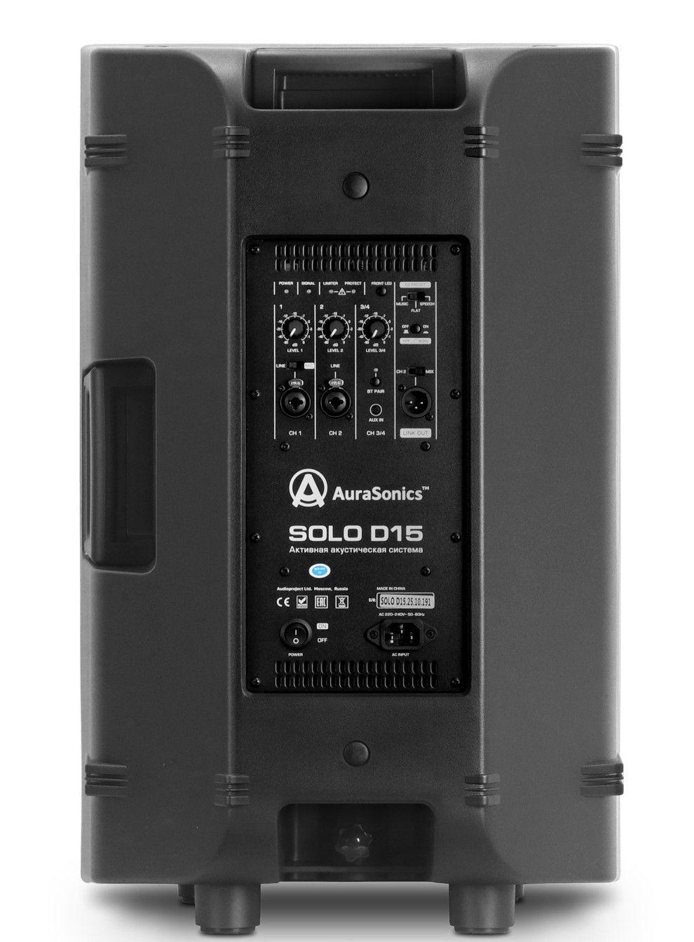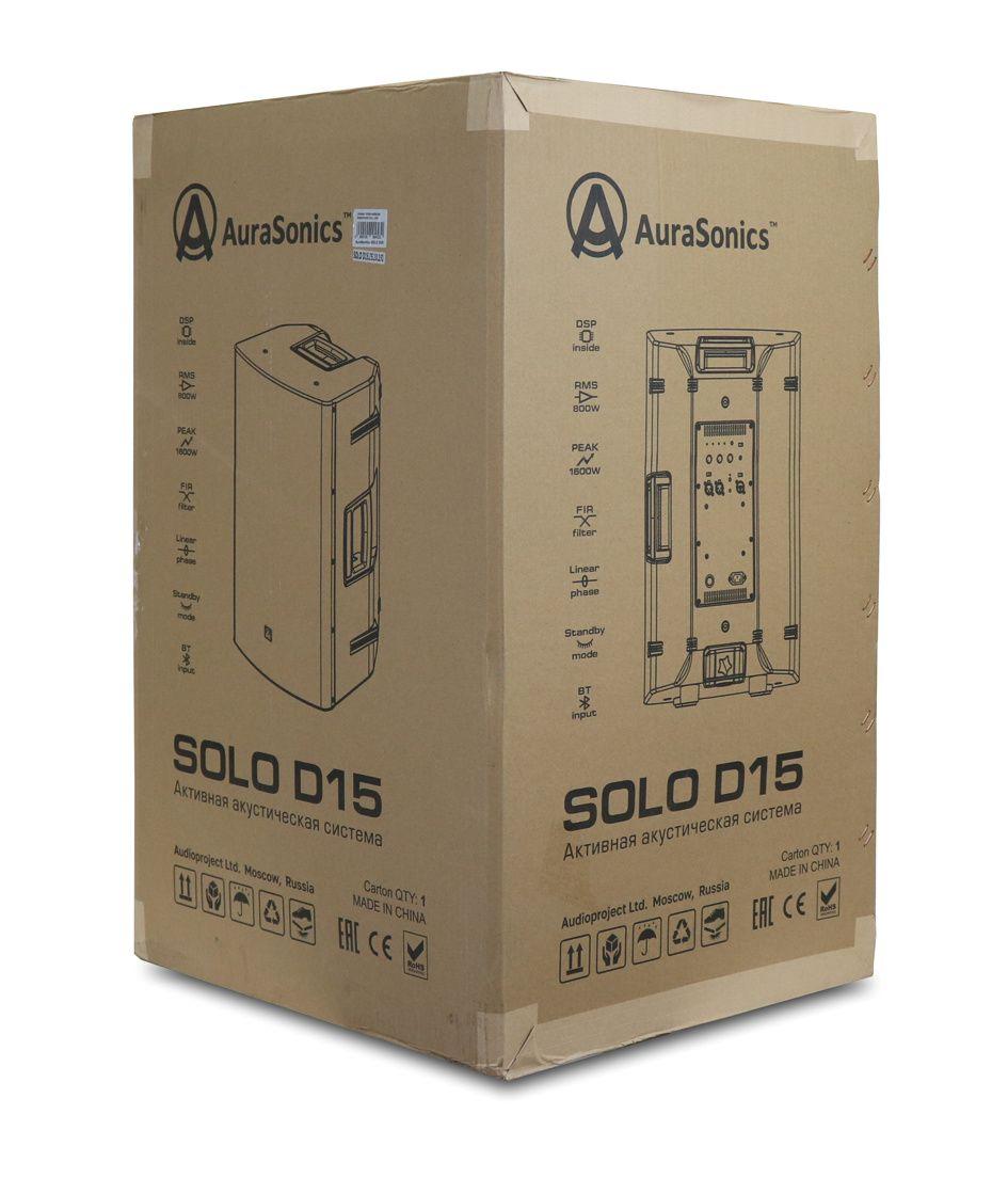 AuraSonics SOLO D15 является активной акустической системой, которая предназначена для концертного применения, а также любых задач, где требуется звукоусиление, как например презентации, спортивные состязания, праздники, торжественные мероприятия и т.д. Для простоты подключения мобильных устройств в модели имеется приёмник Bluetooth. Кроме линейной частотной характеристики, модель также имеет линейную фазочастотную характеристику, что обеспечивает высокую точность и детальность звучания.
