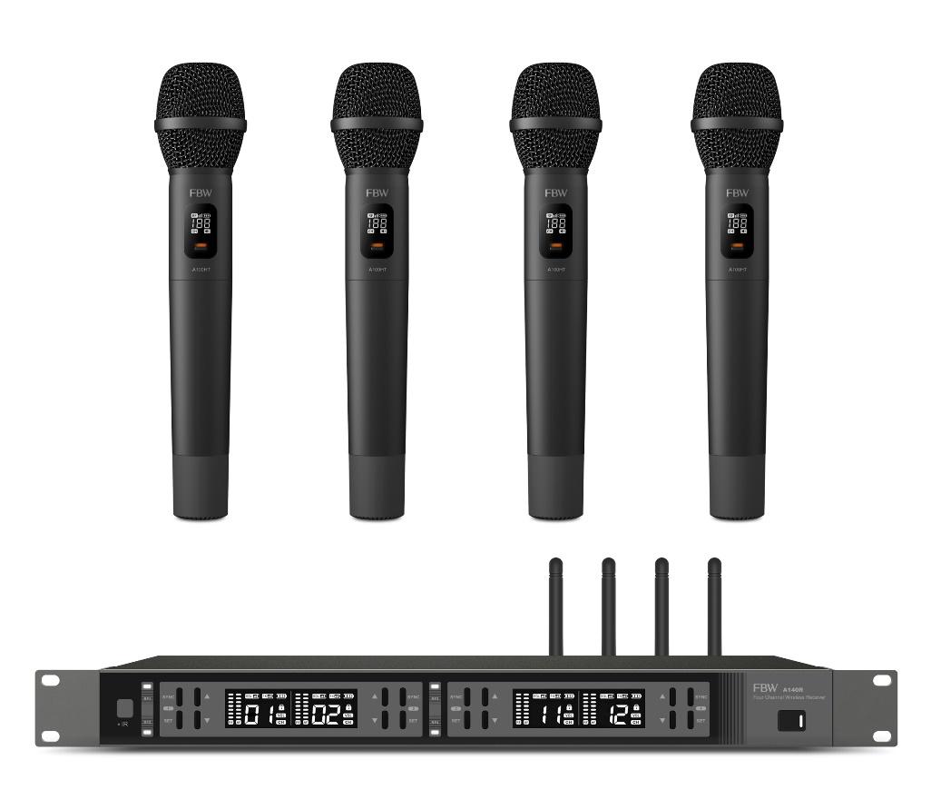 FBW A4-VOCAL четырёхканальная вокальная радиосистема, состоит из приёмника A140R и четырёх передатчиков A100HT, 512-562МГц, FM-модуляция, 2/10/30мВт, 3 уровня Squelch, индикация батареи, 50Гц-15кГц