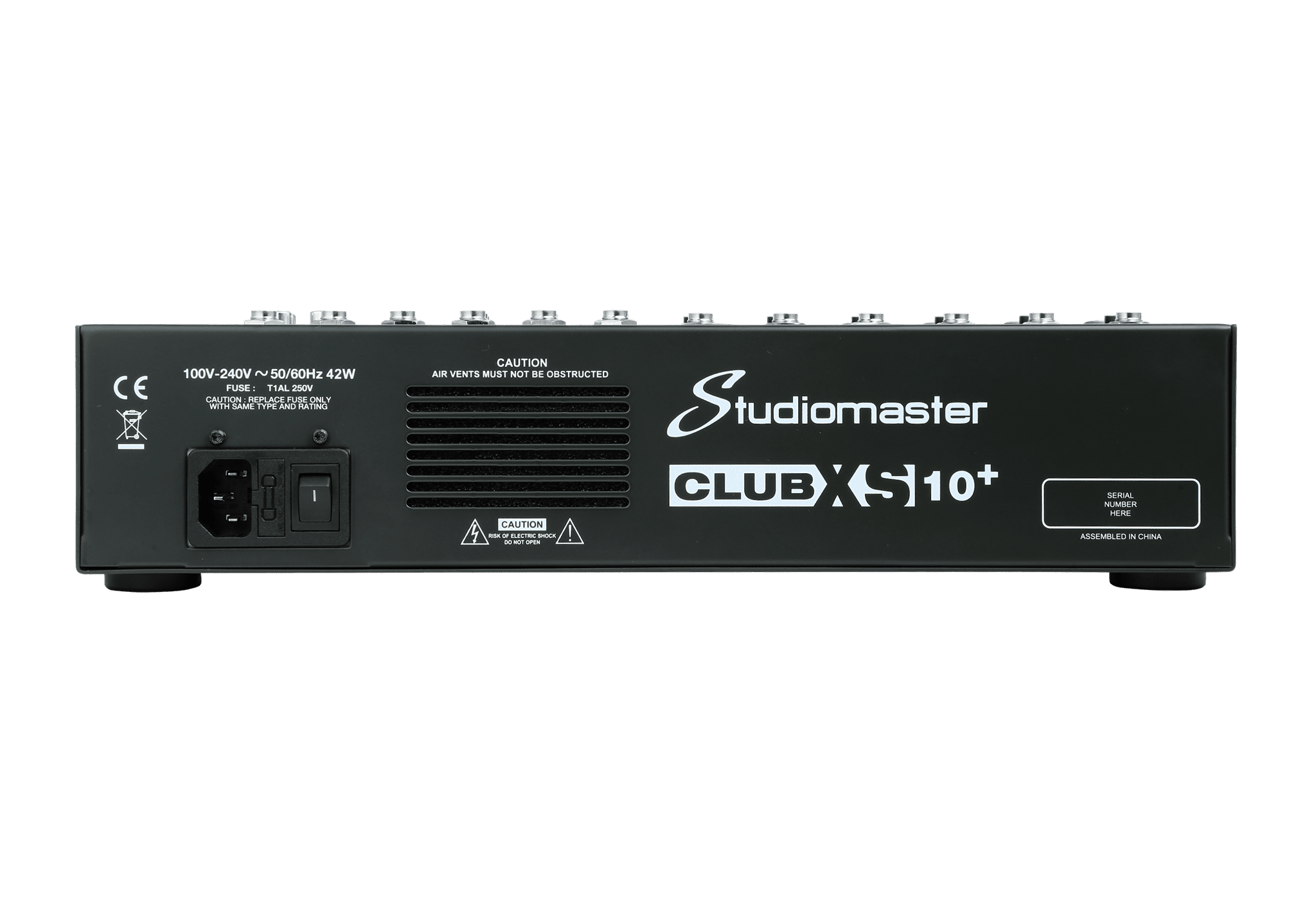 Аналоговый микшер CLUB XS10+ разработан компанией Studiomaster с целью обеспечения достойного качества воспроизведения аудиосигналов от различных источников (каналов) смешивая и обрабатывая их в процессе. Устройство продолжает прекрасно зарекомендовавшую себя на рынке серию CLUB. Микшерный пульт подходит для клубных или фестивальных выступлений DJ, для проведения торжеств и банкетов, при онлайн трансляциях/стримах/записи видеороликов, для репетиций или создания новой музыки в студиях звукозаписи и т.д., и т.п. Рабочий диапазон частот 10 Гц – 20 кГц (+1/-3 дБ).