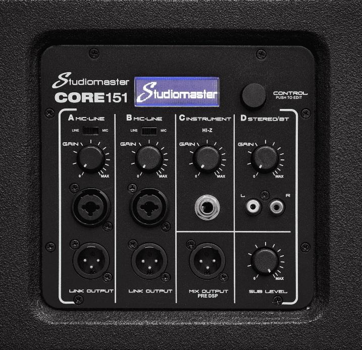 Studiomaster CORE 151 - Звукоусилительный комплект общей мощностью 1100 Вт. Со встроенным четырехканальным микшером, DSP процессором и Bluetooth.