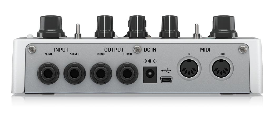 На задней панели PLETHORA X3 располагается стерео разъемы с малым коэффициентом шума и очень высоким запасом по мощности, а также вход MIDI для управления педалью с помощью внешних контроллеров.